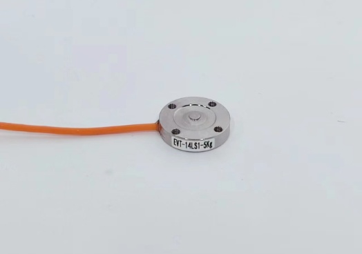 该传感器为小圆形结构,中间凸点受力,外围螺丝孔固定。电阻应变式原理,测量稳定可靠。适用于机械按钮、开关等空间受限制的挤压设备的测力场所。